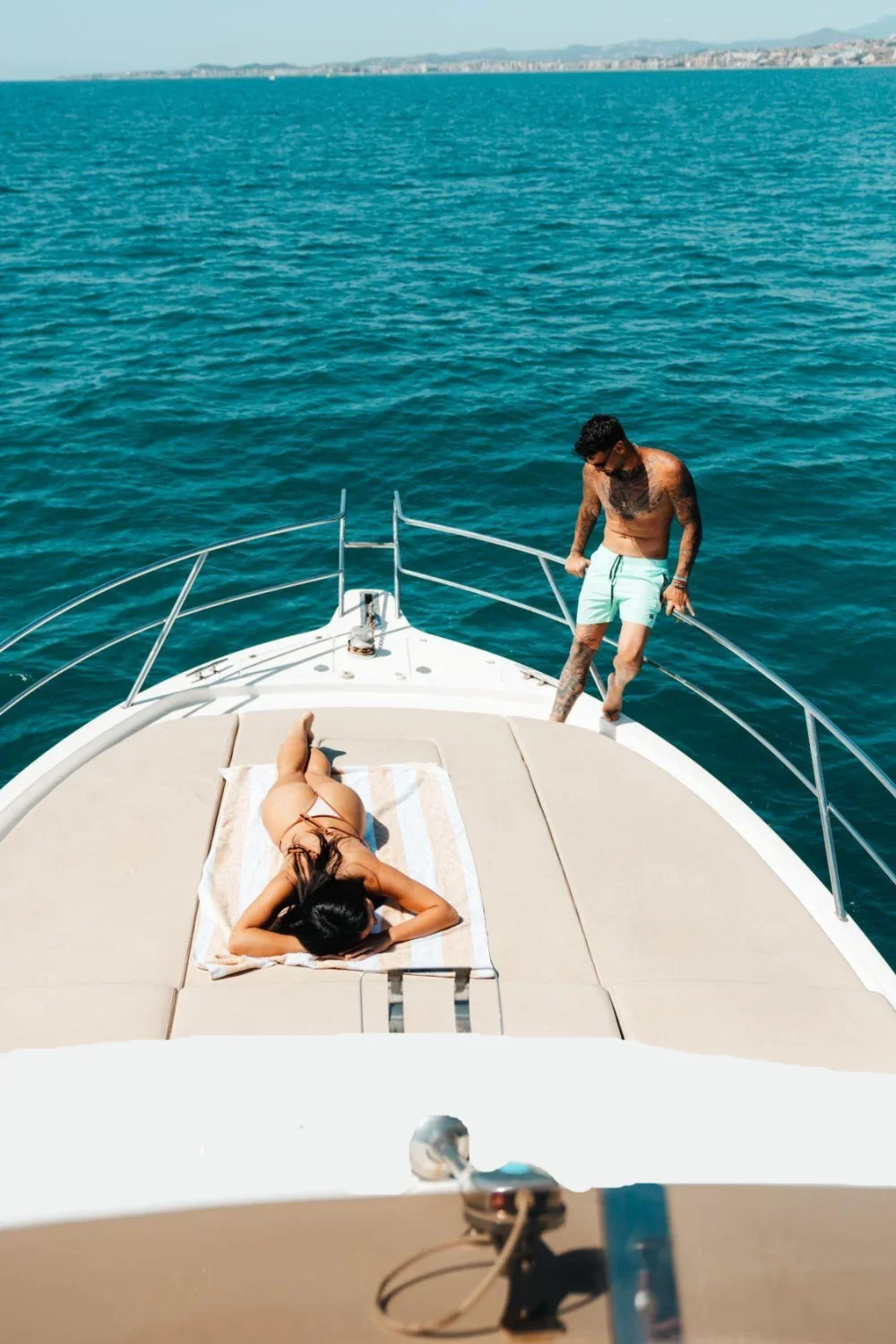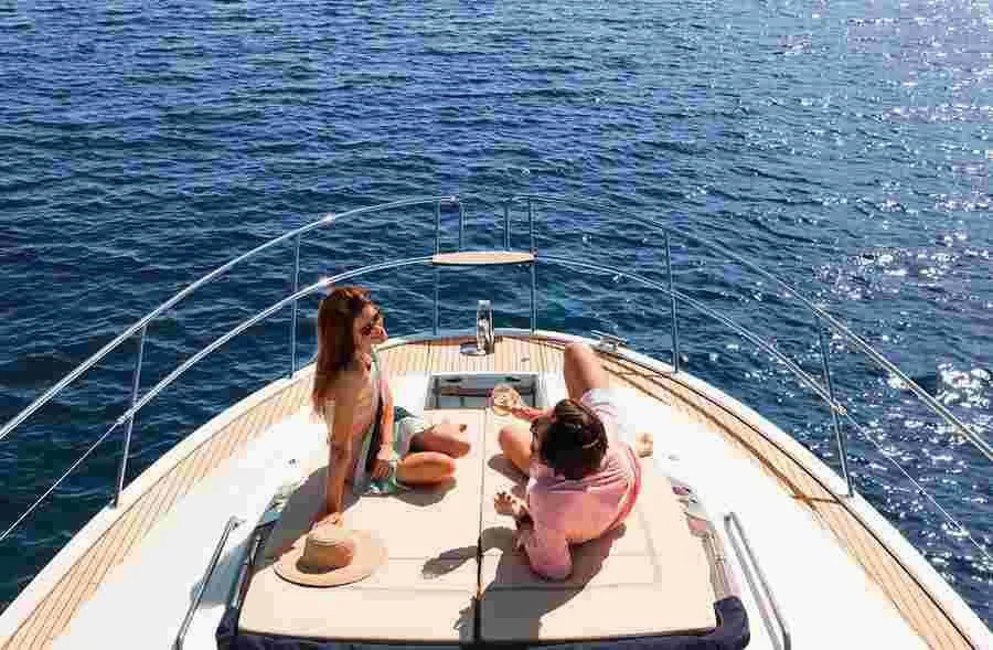 En la cama de proa del yate podrá relajarse, tomar sol y disfrutar de las vistas abiertas al mar mientras navega por aguas tranquilas.